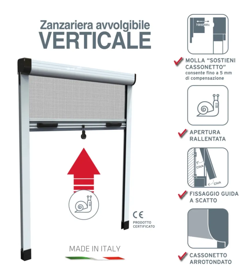 - Apertura: verticale avvolgibile