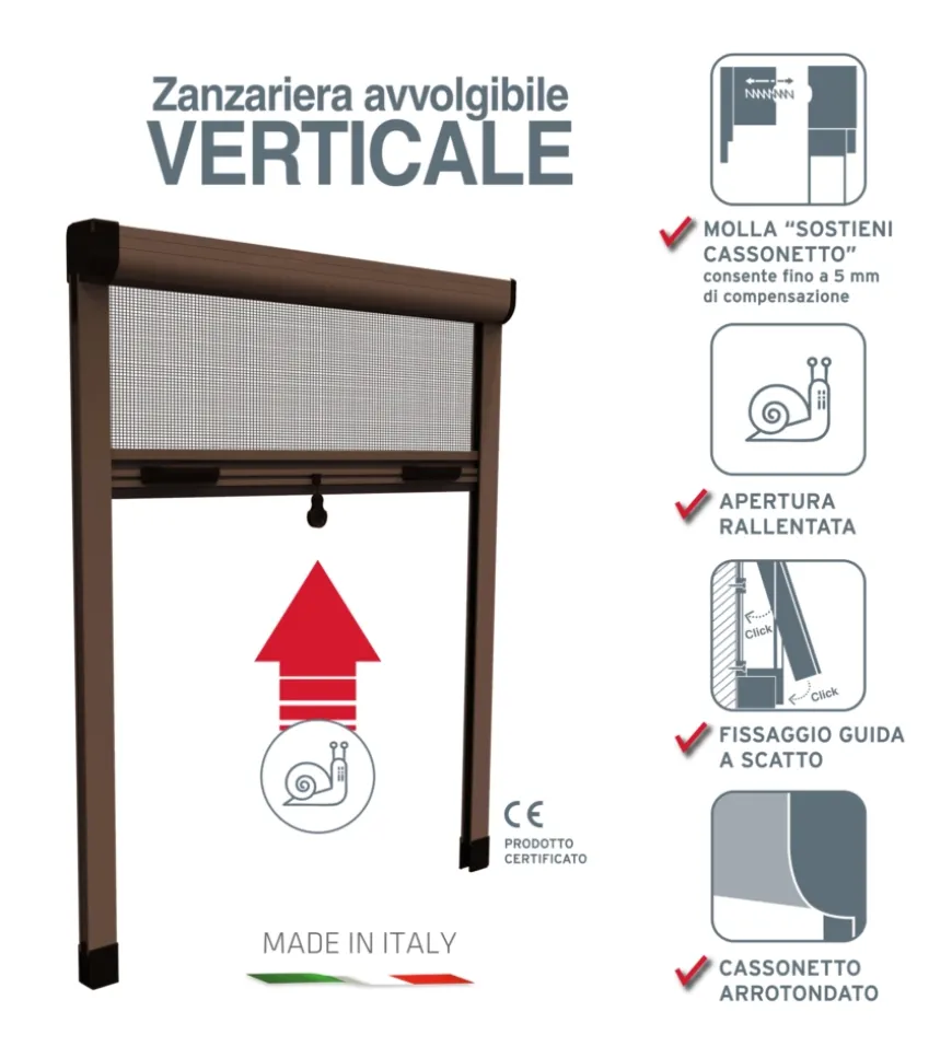 - Apertura: verticale avvolgibile
